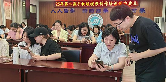 簡短的開班儀式后,擁有多項榮譽的馬千駿老師即刻開啟教學模式。他以“剪映”APP為操作載體,通過“素材篩選-剪輯邏輯-音效搭配-字幕設計-調色技巧-轉場運用”六大核心模塊,系統解析短視頻創作全流程。現場學員在導師指導下分組完成“熱水壺銷售廣告”實操任務,從鏡頭語言運用到平臺發布規則,全方位掌握商業化短視頻制作要領。馬老師特別強調:“短視頻創作不僅是技術活,更是思維戰,我們要培養學員用鏡頭講故事的能力。”