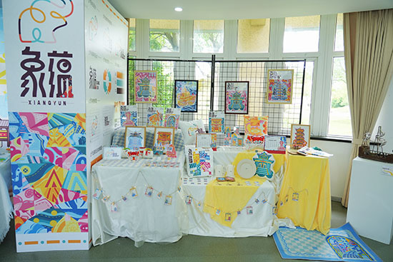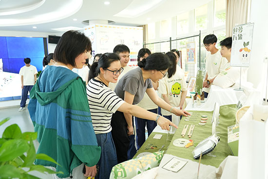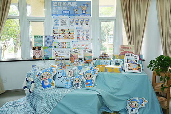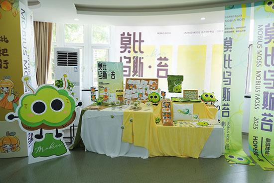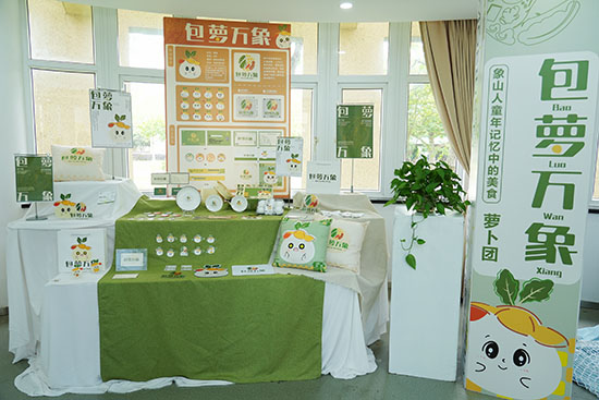 “莫比烏斯?苔”這一主題融合了“苔花如米小,也學(xué)牡丹開(kāi)”的堅(jiān)韌精神與莫比烏斯環(huán)的無(wú)限循環(huán)意象,展現(xiàn)了傳統(tǒng)文化在創(chuàng)新中永續(xù)發(fā)展的可能。在展覽中,五大創(chuàng)意項(xiàng)目各具特色。國(guó)潮品牌“枇杷行”將明黃色調(diào)與中國(guó)水墨元素完美結(jié)合,打造出溫婉靈動(dòng)的“蘆枝”形象;“笨胖魚(yú)”系列用高飽和色彩構(gòu)建童趣海洋世界,為海產(chǎn)品注入鮮活個(gè)性;非遺美食“包蘿萬(wàn)象”通過(guò)清新自然的包裝設(shè)計(jì),讓傳統(tǒng)蘿卜團(tuán)煥發(fā)新生;“海天之靈”項(xiàng)目則用藝術(shù)手法呼吁保護(hù)棲息在象山的中華鳳頭燕鷗;而“象蘊(yùn)”系列通過(guò)12處地標(biāo)建筑的創(chuàng)意插畫(huà),繪制出一幅生動(dòng)的文旅地圖。“我們同學(xué)希望這些作品不僅是藝術(shù)創(chuàng)作,更能成為象山文旅的新名片,吸引更多人來(lái)探索這座東海小城的獨(dú)特韻味。”專業(yè)指導(dǎo)教師王佳妮動(dòng)情地表示。