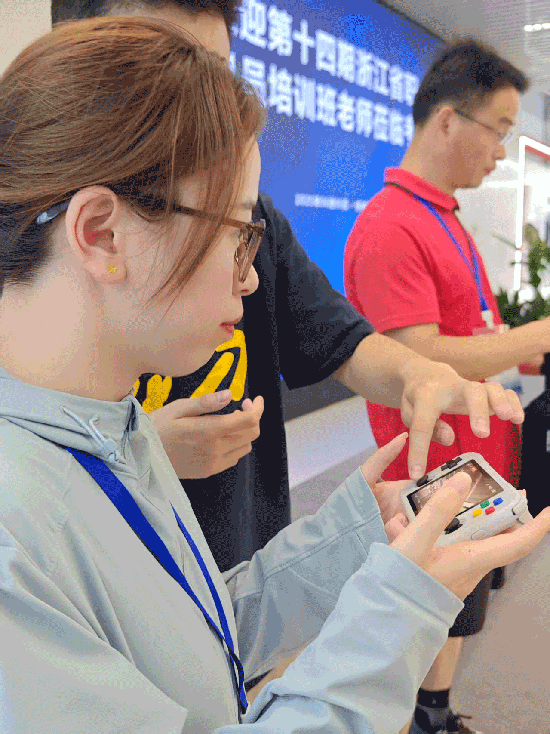 6月4日上午,浙大智能教育研究中心教育智能體項目負責人劉維金分享了教育AI智能體應用平臺之傳媒應用的前沿知識;下午,上海交通大學生物醫學工程博士韓燦帶領學員進行了AI賦能新媒體與辦公內容優化的實戰訓練。6月5日上午,學員們還前往省數字教育港參訪,觀摩人工智能應用軟硬件的迭代更新,由省數字教育港負責人葛玉峰講解。