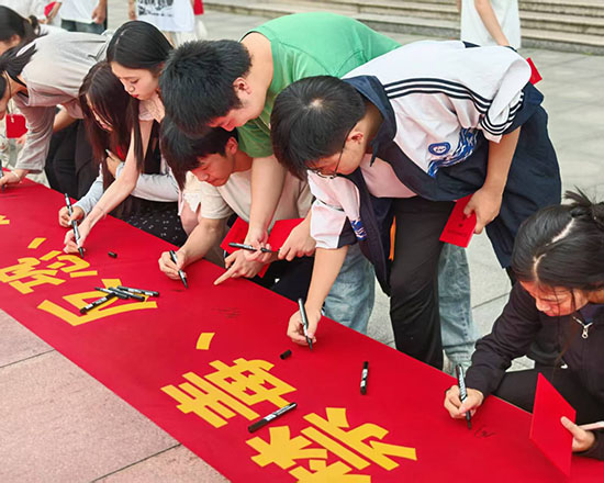 典禮結束后,畢業生們紛紛在“青春紀念墻”主題拍照區留下珍貴影像。一張張笑臉洋溢著自信與期待,一幅幅創意合影定格著同窗情誼。(郭超婷)