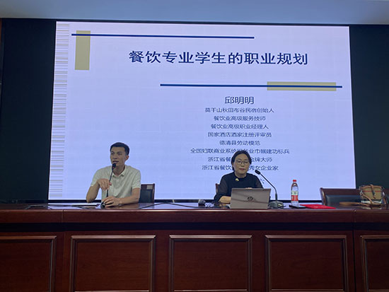 活動周創(chuàng)新引入“家長導(dǎo)師”資源。莫干山秋田布谷民宿創(chuàng)始人、德清縣勞動模范、浙江省餐飲行業(yè)優(yōu)秀女企業(yè)家邱明明女士,為酒店、烹飪、園林專業(yè)的學(xué)生帶來了融合行業(yè)前沿與匠心精神的生動一課。醫(yī)生家長則走進(jìn)課堂,講授夏季傳染病預(yù)防知識,實(shí)現(xiàn)專業(yè)醫(yī)學(xué)與校園健康教育的完美融合。獄警家長為學(xué)生開展法律講座,了解法律常識、校園欺凌以及未成年人犯罪現(xiàn)狀。行業(yè)精英與專業(yè)人才走進(jìn)校園,為職教學(xué)子打開了更廣闊的視野。