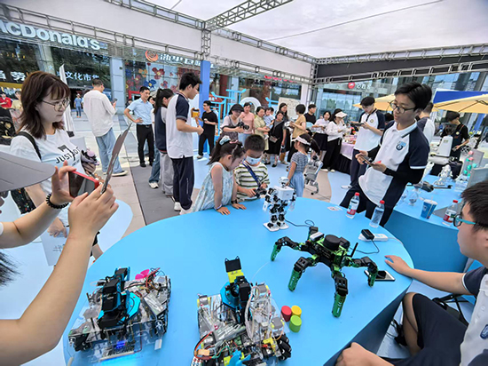 智能機器人展示區:形態各異的智能機器人成為焦點。搭載高清廣角攝像頭的人形機器人,具備人臉識別、顏色追蹤等智能功能,并可完成踢球、巡線等趣味動作。參觀者通過動手互動,親身感受科技魅力,深度了解學校AI教學成果與人才培養。
