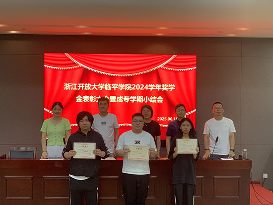 為表彰先進(jìn),樹立榜樣,營造勤學(xué)上進(jìn)的良好學(xué)風(fēng),6月16日,浙江開放大學(xué)臨平學(xué)院獎(jiǎng)學(xué)金表彰大會(huì)在學(xué)院報(bào)告廳隆重召開。學(xué)院院長沈琪、副院長陳勝瑩、繼教處主任夏麗萍、副主任屠丹華、相關(guān)部門負(fù)責(zé)人出席,獲獎(jiǎng)學(xué)生代表及全體成教脫產(chǎn)班師生參加。