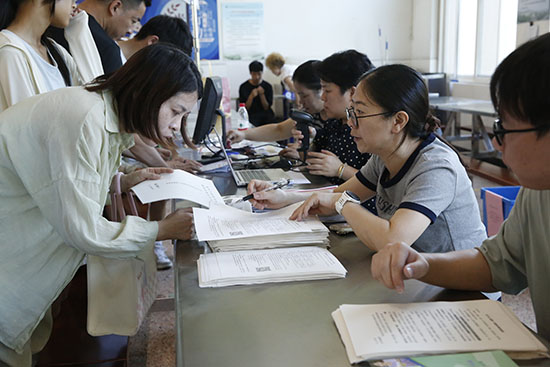 為保障報到工作高效、順暢,學校提前進行了周密部署。校園內,身著紅馬甲的教師志愿者團隊一早便投入工作,現場設置了清晰的指示牌和排隊取號處,為新生及家長提供引導服務。