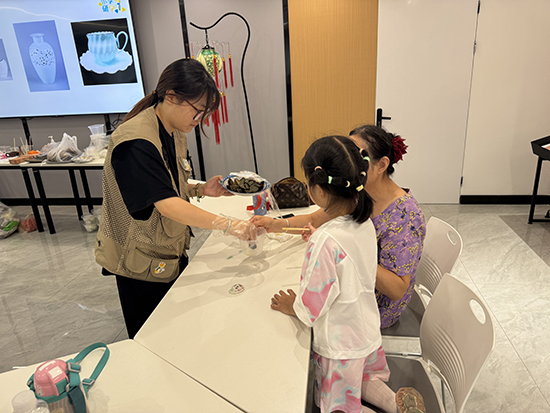 活動伊始,志愿者老師們通過觀察、觸摸、游戲和創作等方式,讓孩子們感受泥土的神奇與趣味。緊接著,老師們通過生動有趣的講解,向親子家庭介紹了皮蛋的歷史和制作工藝,孩子們對即將開始的制作活動充滿期待。