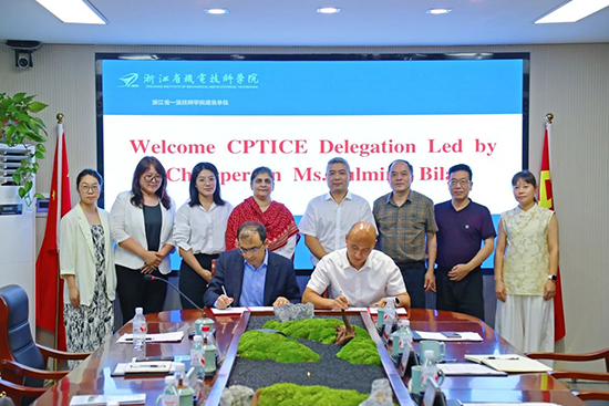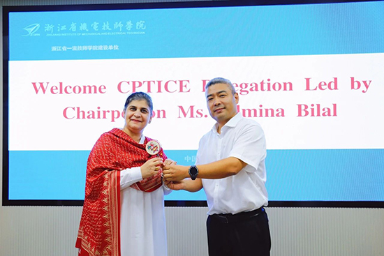 7月12日,中巴職業(yè)教育國際交流活動在浙江機(jī)電技師學(xué)院舉行。巴基斯坦國家職業(yè)技術(shù)教育委員會主席、中巴產(chǎn)教合作卓越中心巴方主席古爾米娜·比拉爾·艾哈邁德(Gulmina·Bilal· Ahmad),中巴國際產(chǎn)教合作聯(lián)盟秘書長阿瑪爾·穆罕穆德(Muhammad·Ammar)等嘉賓蒞臨現(xiàn)場。學(xué)院黨委副書記、院長朱旦標(biāo),黨委副書記、紀(jì)委書記麻劍波,黨委委員、副院長陳利軍、丁軍凱、胡青玲,黨委委員錢鑫鑫及相關(guān)負(fù)責(zé)人出席活動。