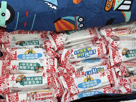 當影片情節扣人心弦之際,一群身著紅馬甲的社區青少年志愿者悄然化身“清涼使者”穿梭于觀眾席間。他們為每位居民送上由社區精心熬制的冰鎮酸梅湯,以及中國郵政儲蓄銀行浦沿支局傾情贊助的解暑棒冰。最令人眼前一亮的,是包裝上“文明交通平安相伴”“網絡貸款莫輕信”“防范電信詐騙”等簡潔有力的平安宣傳貼士,一份“平安清涼禮”,就這樣在傳遞間,將安全意識如涓涓細流浸潤至居民心田。孩子們額頭的汗珠與居民們會心的笑容,成為這個夏夜最動人的注腳。