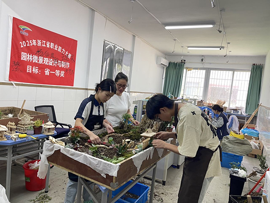 富陽區職業高級中學園林專業十四五期間為省高水平建設終期評價優秀專業,本次參賽項目依托產教融合,構建產業大集群。將園林專業技術技能、數智化裝備、低空監測等整合應用于銀發庭院真實場景。備賽期間學生一直秉承汗水鑄就輝煌,創新成就夢想的理念,扎根真實一線崗位,將作品從理念到施工再到養護有機融合,最終憑借出色的表現贏得了評委的高度認可,成功摘得首金,挺進排位賽!