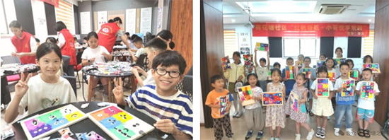 7月22日,荷花塘社區“悅芽兒”假日學校的教室里 一場以“學有所“悅” 多彩童趣”為主題的黏土拼貼畫活動,讓近30名孩子在假期里收獲了滿滿的快樂與成長。活動現場,來自學校黏土社的同學們向小朋友們上了一節有趣的黏土課:介紹了黏土拼貼畫的基本技巧,包括黏土的揉捏、塑形以及拼貼組合的方法,并在活動過程中,黏土社的同學們不時地走到孩子們身邊,給予他們指導和鼓勵。活動尾聲,孩子們紛紛展示出自己的作品,每一幅作品都充滿了想象力和創造力。