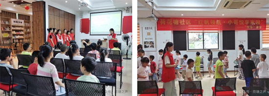 7月25日下午,荷花塘社區結合暑期假日學校“悅讀”課堂,組織轄區少年兒童及小哥子女開展了“書香潤童心,悅讀伴成長”全民閱讀活動。活動中,來自學校幼兒保育專業的志愿者們為孩子們生動地演繹了《森林王國》《小王子》等故事,志愿者們模仿著角色的語氣和動作,將故事中的情節生動地再現出來,引得孩子們連連鼓掌。在趣味活動環節,志愿者老師結合搶椅子趣味游戲,提出一個個關于《小王子》《森林王國》等相關的問題,孩子們紛紛舉手搶答,答對的孩子還能獲得小獎品,現場歡聲笑語不斷。