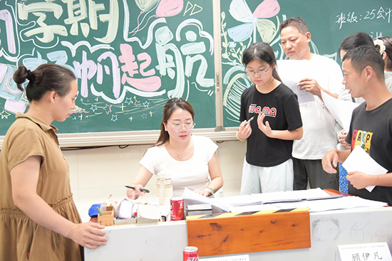 班主任老師們是新生入校后的“第一任導師”,“歡迎你,新同學!”在各個新生教室里,班主任老師們早已做好了充分的準備。有的班級黑板上寫滿了溫馨的歡迎詞,有的班級新增了勵志的迎新展板,有的班級貼心地準備了小禮物或專業特色產品,讓整個教室充滿了家的溫暖。班主任們耐心地為新生辦理報到手續,核驗資料,介紹開學注意事項、寢室分布等,面對新生和家長們的各種疑問,班主任們不厭其煩地一一解答,努力消除他們的顧慮。一句句叮嚀,一聲聲囑托,飽含著班主任對新生的深切期望與無私關愛。