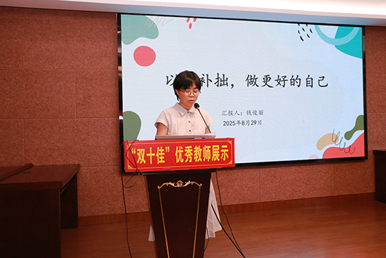 九位“雙十佳”優秀教師代表中既有校級領導,也有中層干部,更有一線教師。他們依次登臺,作了精彩紛呈的先進事跡分享。他們不僅展現出卓越的工作智慧與教育溫度,更傳遞出砥礪前行、躬耕教壇的榜樣力量。