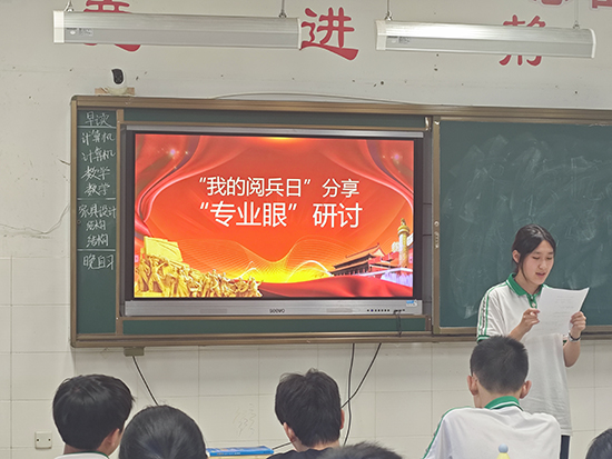 尤為特別的是 “用技能的眼光,發現強國的力量”環節。結合自身專業,同學們跳出 “看熱鬧”的視角,用知識解讀閱兵背后的 “強國密碼”:機電、數控專業學生聚焦裝備底盤結構與傳動系統,探討重型車輛平穩行駛的技術原理;計算機、電子電工專業學子關注無人作戰與信息作戰方隊,分析編程、算法對裝備運行的支撐作用;美術、家具專業學生則從審美角度出發,點評受閱服裝的色彩搭配與徽章設計的文化內涵……專業視角與家國情懷的碰撞,讓愛國教育更具深度與針對性。