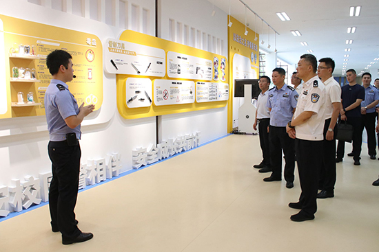 儀式結束后,各位領導移步實地參觀了“定安警校”的安防體驗區、晾曬展示區及心理輔導區,通過現場察看、聽取介紹等方式,詳細了解警校的功能布局、設施配置及未來運行規劃。