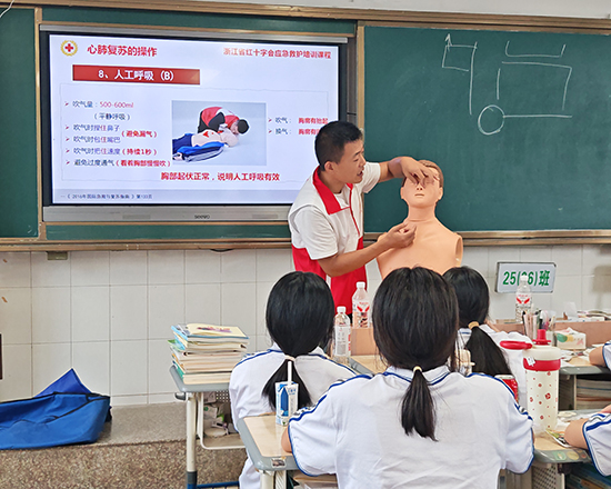 近日,衢州第二中專、江山綜合高中聯(lián)合江山市紅十字會(huì),為全體高一新生開展了一場(chǎng)為期兩天的應(yīng)急救護(hù)培訓(xùn)。24個(gè)班級(jí)、1000多名同學(xué)踴躍參與,學(xué)習(xí)急救知識(shí)、掌握救命技能,以扎實(shí)的學(xué)習(xí)成果通過考核,正式成為“紅十字救護(hù)員”。