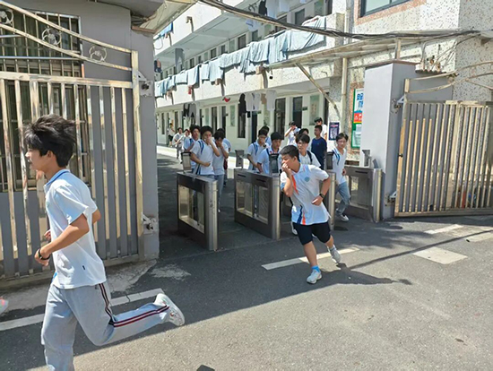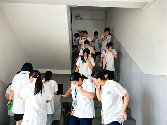 13時,急促的應急警報聲劃破校園寧靜,疏散演練正式啟動。各崗位演練人員聞令即動,沉著開展指揮;班主任第一時間組織學生采用低姿彎腰、捂鼻等防護姿勢,迅速撤離宿舍樓,沿預定路線有序向安全區域轉移。集合過程中,各班整齊列隊、肅靜有序,班主任精準清點人數,確保無一遺漏,全員到位。