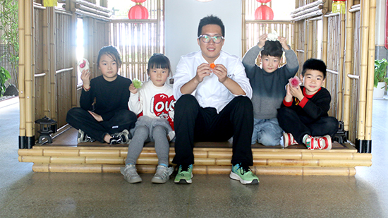 匠心育苗,職教鍛造傳承鏈。2021年鄭云海“云端廚藝工坊”開始為鄉村孩子打造“食雕童趣樂園”,孩子們稚嫩小手握著塑料刻刀,將白色蘿卜蛻變成躍動的小兔、綻放的牡丹;讓蘋果化作星空下的城堡,冬瓜變作憨態可掬的花籃。孩子們在雕刻中不僅鍛煉指尖精細動作,更在果蔬清甜氣息里領悟“萬物皆可造”的創意哲學。2022年3月鄭云海被聘為西湖區雙浦鎮社區學校“浦味食坊鄭云海工作室”駐校指導,普惠社區居民學習果蔬雕刻技藝。他與西湖職高、杭州第一技師學院建立校企合作,親自擔任“果蔬創藝課”專業指導,每周兩節食品雕刻課成為100多名學生的“工匠搖籃”。他的課程以“觀察—拆解—重雕”為主線,學生從雕刻胡蘿卜幾何體進階到創作瓜果微景,定期舉辦“小匠人作品展”。他將學生優秀創意轉化為文創產品,讓工匠精神在刻刀與果蔬的碰撞中萌芽。同時擔任區殘聯就業指導特聘專家,培養特殊學員300余人,為杭城餐飲行業輸送高質量技能人才。