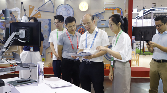 在豪情汽車工業(yè)學校的展位,吸引了眾多教育同行、企業(yè)代表、觀展嘉賓駐足交流,收獲廣泛好評。浙江省教育技術中心黨總支書記、主任、浙江省教育裝備行業(yè)協會會長王會軍、省教育技術中心黨總支委員、副主任胡小杰蒞臨學校展會關心,王會軍書記充分肯定并希望豪情汽車工業(yè)學校努力培育出具有吉利特色的汽車工程教育實踐場所。臺州市教育局副局長邱小方、副局長王曉劍蒞臨學校展位參觀指導,并對實踐中心建設成果給予肯定。