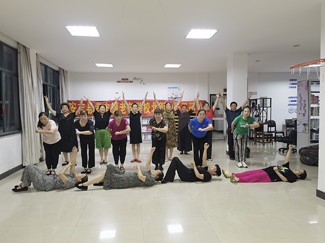 排練現場,學員們雖已年過花甲,但熱情絲毫不減。伴隨著悠揚的紅色樂曲,大家手持道具,邁著整齊的步伐,在裘美芳老師的口令下反復打磨每一個動作、每一個眼神。裘美芳老師憑借豐富的教學經驗和對紅色文化的深刻理解,耐心地為學員們糾正姿態、講解動作背后的紅色內涵:“這個抬手的動作,要像革命先輩舉起旗幟那樣堅定;這段轉身的銜接,要體現出團結一心、奮勇向前的精神。”
