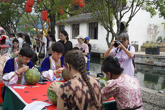 “把家鄉(xiāng)的文化刻進(jìn)江南的西瓜燈,就像我們?cè)谶@里的日子,能這樣穩(wěn)穩(wěn)地融在一起。”親手雕刻的過(guò)程中,他們觸摸到江南文化的細(xì)膩與厚重,也在非遺傳承里,找到了本民族文化與中華文化的契合點(diǎn)。