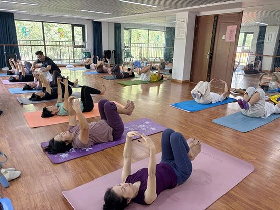 柔姿舒體解疲憊,靜修調氣悅身心。本學期丹楓老年學堂新開設中國式瑜伽班。9月26日下午,瑜伽班學員們在老師溫和的語言引導下,借脊椎舒展、腰腹輕抬的躺姿動作調節呼吸,于動靜之間實現借身練心。