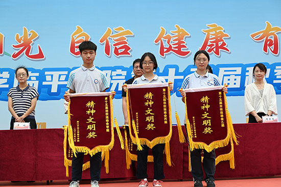 汗水書寫勝利,拼搏鑄就輝煌。閉幕式現(xiàn)場進(jìn)行了本次校運(yùn)會的頒獎儀式。