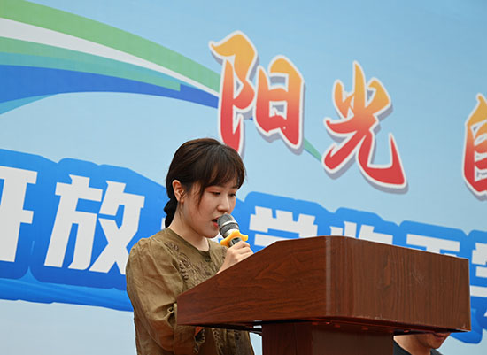 總裁判長杜秋萍宣布團(tuán)體成績優(yōu)勝班集體