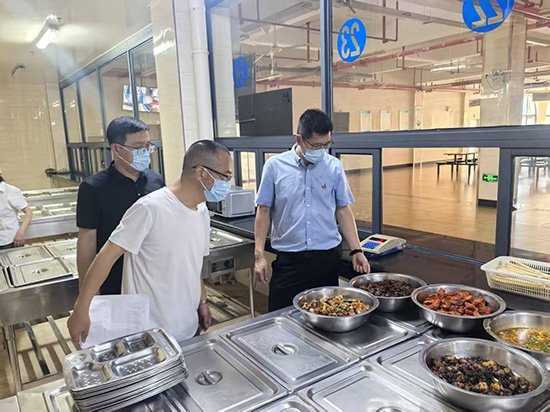 檢查過程中,檢查組明確指出食堂當前存在的一些問題,特別對個別員工在工作期間未規范佩戴口罩的不當行為進行了嚴肅批評。同時,也指出了部分操作區域衛生細節有待加強、個別設備維護保養需及時跟進等問題。檢查組要求食堂管理方必須正視問題,立即制定整改措施,并將整改責任落實到人,限期完成,后勤保障處將進行跟蹤復查。檢查結束后,夏校長及后勤組對食堂管理人員提出了明確的新學期工作要求:一要嚴把食品安全關, 必須嚴格落實各項食品安全管理制度,強化源頭管控,完善索證索票與進貨查驗臺賬,確保食材來源可靠、品質合格。加強加工過程規范性管理,杜絕交叉污染,嚴格執行餐具消毒和食品留樣規定。二要聚焦飲食健康服務, 在保障安全的基礎上,要更加關注學生營養健康需求。科學搭配膳食結構,豐富餐食品種,提升餐食質量與口味,努力提供健康、營養、可口的飯菜,滿足學生成長所需。三要強化日常精細化管理,要求食堂管理團隊及全體員工提升責任意識與服務意識,嚴格遵守操作規程,保持環境衛生整潔常態化,確保師生擁有一個溫馨、舒適、安全的就餐環境。