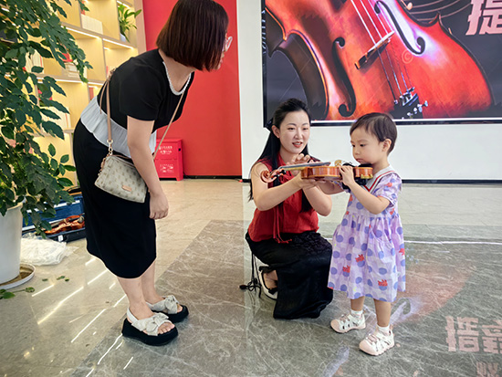 新碶街道社教中心梧桐分中心將持續(xù)推動服務模式從“被動響應”向“主動發(fā)掘”延伸,不僅關(guān)注居民的“急難愁盼”,更積極發(fā)掘社區(qū)中的“隱形”人才,鼓勵“居民服務居民”的鄰里互動。社區(qū)網(wǎng)格員在日常走訪中,留意到居住在社區(qū)內(nèi)、具備精湛小提琴演奏技藝與深厚音樂素養(yǎng)的胡曉光老師。在社區(qū)的誠摯邀請下,胡老師欣然接受邀請,主動提供12臺小提琴作為公共教學設備,并親自為鄰居們授課。更令人欣喜的是,在古琴演奏方面也頗有造詣的胡老師女兒胡蘊子,也深受感染,表示下一步愿向社區(qū)居民傳授古琴技藝,助力傳統(tǒng)民樂傳承。胡老師一家正以實際行動,讓高雅藝術(shù)走入尋常百姓家。