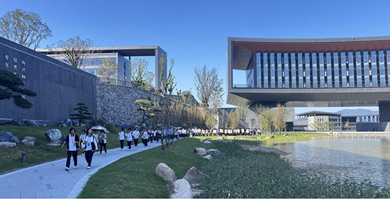 湖州職業技術學院藝術與時尚創意學院的李娜和李禎禎老師帶領同學們開啟了一場沉浸式的校園文化之旅。師生一行首先步入在包婉蓉京劇服飾館,一件件繡工精美、紋樣華麗的戲服靜靜陳列,同學們駐足良久,在服飾的方寸之間賞析傳統美學展示的精美服飾與歷史故事,吸引學生駐足賞析。在圖書館,豐富的專業藏書與便捷的數字資源,為學生們打開了一扇通往設計前沿的窗口。大家或翻閱紙頁,或瀏覽數據庫,在知識的海洋中尋找靈感,汲取專業成長的養分。