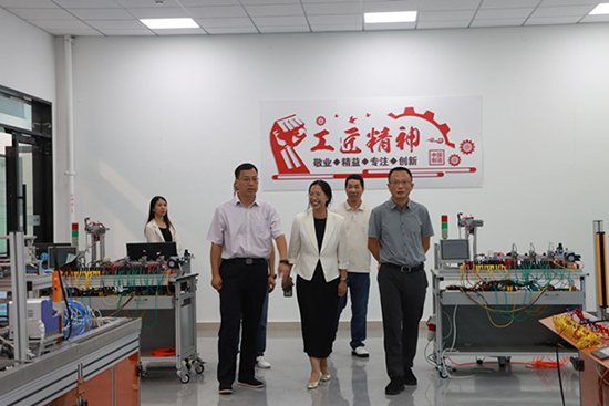 考察團一行首先走進市中等職技校實訓場地,圍繞“資源共享”核心,實地探尋綜合高中辦學背后的實訓教學支撐體系。在各專業實訓車間,考察團成員仔細察看設備配置與運行情況,詳細詢問實訓設施如何在中職與綜合高中間高效統籌使用,深入了解依托中職資源開設的綜合高中專業方向、課程設置以及學生技能培養的目標與路徑。規整的場地管理、先進的教學設備,讓考察團成員直觀感受到技能培養的扎實成效,更對玉環市綜合高中“中職-普高資源互通、協同育人”的融通模式,建立起清晰且深刻的初步認知。