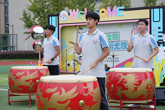 立荷擊鼓隊:壓軸登場的立荷擊鼓隊,以 “傳統擊鼓 + 現代激情” 為特色,讓社員在鼓點中釋放活力。他們以鼓為筆,演繹《少年中國說》,激昂的鼓點如心跳般有力,躍動的節奏似脈搏般鮮活,既展現了傳統擊鼓的氣勢,也傳遞出少年的熱血豪情,將整場演出推向高潮。